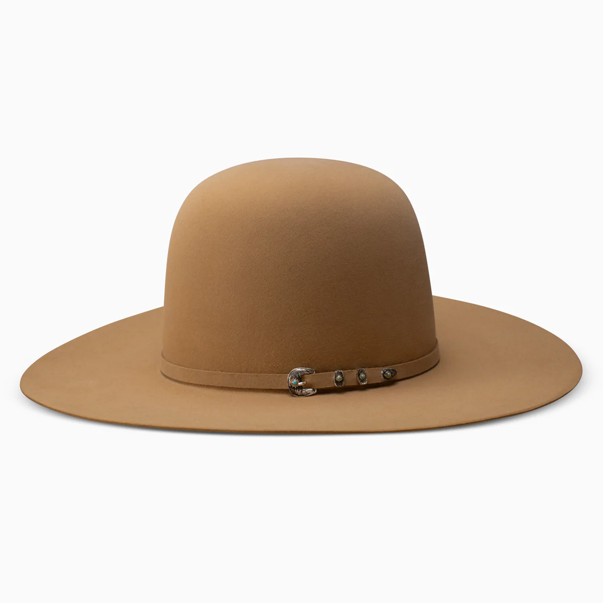 With its premium 30X felt construction and Great Plains-inspired hues, the Resistol 30X Prairie Wind Cowboy Hat taps into the spirit of the American West. This hat has a 6” open crown, a 4 1/4” brim, a leather sweatband, and a silver buckle adorned with gold and ice-blue detailing.
